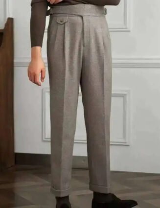 These Italian wool herringbone pattern straight pants bring classic style with a laid-back vibe. Made from soft. breathable cotton. they’re perfect for everyday wear. With plenty of pockets. they combine practicality with a cool vintage look. Whether you’re out and about or just chilling. these pants keep you comfortable and effortlessly stylish. Material: Polyster. Cashmere…