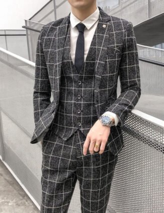 Slim-Fit Plaid Pattern 3 Piece Suit
